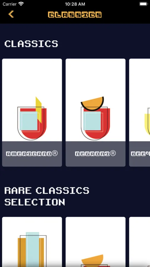 * Lista dei cocktail classici e una selezione di cocktail “Rari”