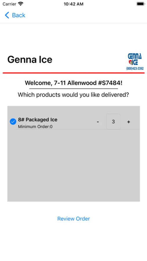 Genna Ice Xpress Ordering App offers a quick and easy portal for customers to request services. These services including ice orders, maintenance/repairs, and other special requests.