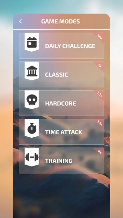 In the Daily Challenge, you'll get to guess modern tanks. In Classic mode, levels are opened one by one, offering a gradual increase in difficulty. Hardcore mode gives you only one life, making the game incredibly challenging. Time Attack mode gives you unlimited lives, but you have to answer as many questions as possible in a limited time. The Training mode offers a no-pressure, no-coin-earning opportunity to perfect your tank knowledge.