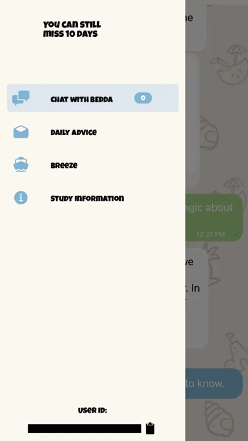 With BEDDA you go on a 30-day journey to improve your mood, reduce your stress, and worry less. To participate in the study and open the app you need to be enrolled in the study. If you haven't answered the questions regarding your elegibility you can find the eligibilty interaction under https://www.bedda.me. The app is only accessible for participants in the study.