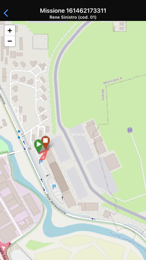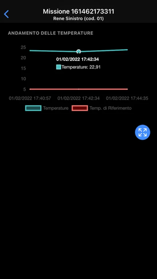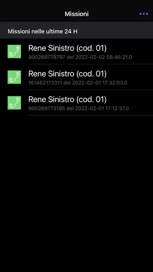 GistoApp elenca le missioni di trasporto in corso nelle ultime 24 ore, e per ognuna visualizza il percorso di spostamento, il grafico della temperatura dell'organo, lo stato della missione.