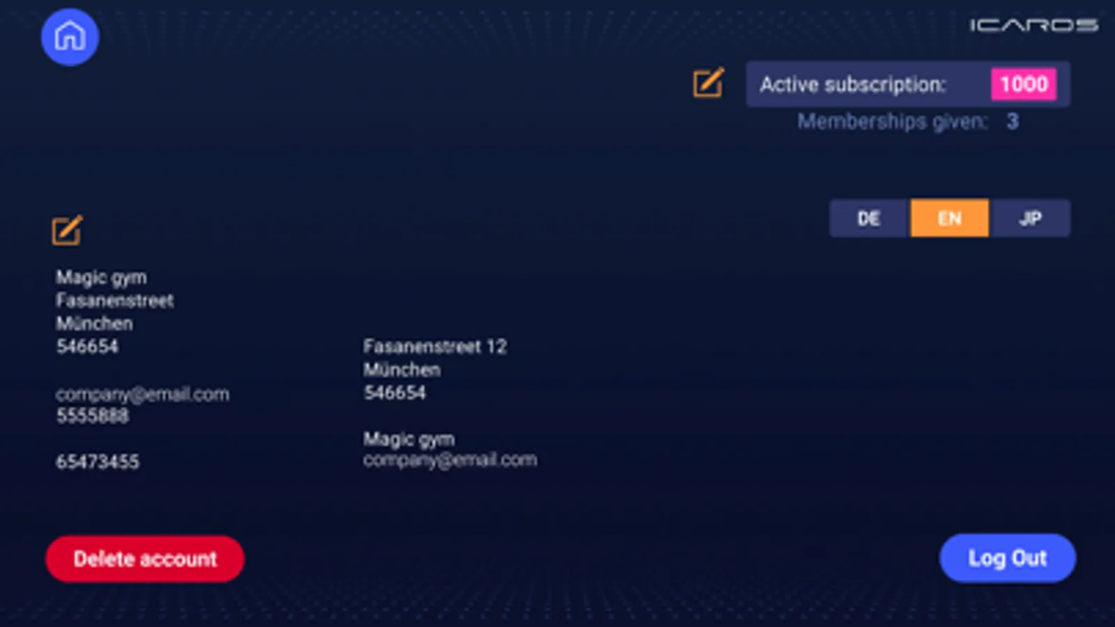 ICAROS B2B allows you to purchase licenses for full access to all functions of the ICAROS App, that you can share with your members. It also enables you to manage your members' accounts and to add or delete new members.