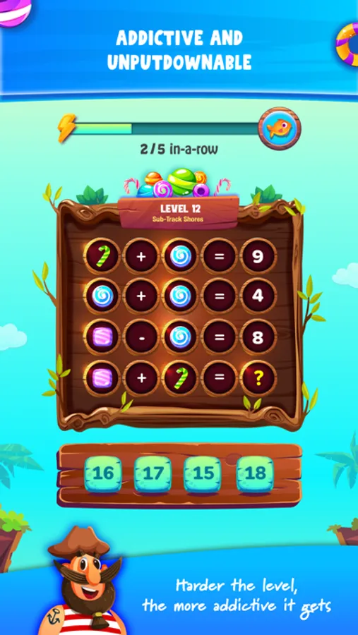 Jack Candy, the friendly pirate of Jelly Cove, would like to add fish from far off islands to his collection in Jelly Cove. Your mission is to help him add fish to his collection. You unlock fish by solving puzzles and completing a level.