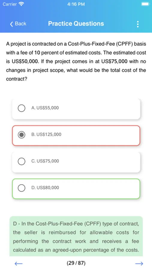 1- The app contains bucket loads of material such as 2250 real PMP questions,