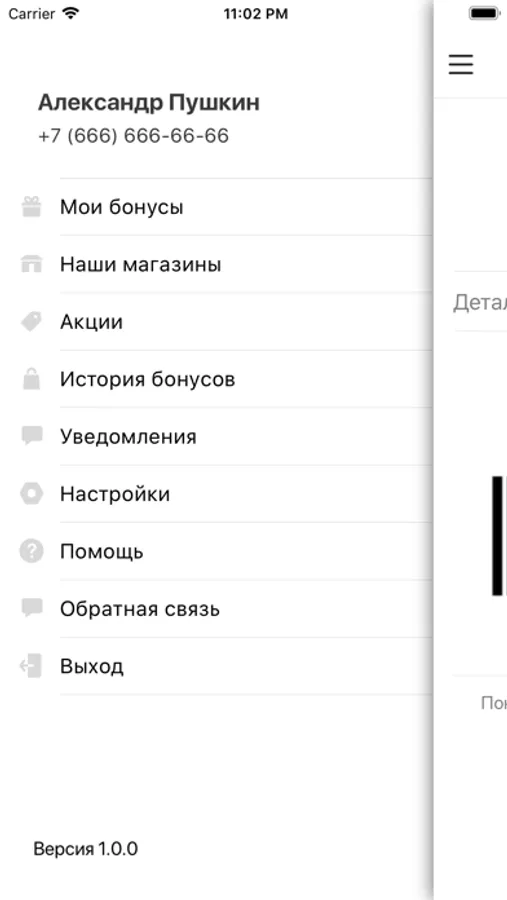 - просматривать баланс бонусных баллов в программе лояльности ;