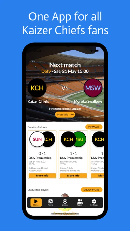 Follow Kaizer Chiefs anytime and anywhere with us and other fans. This is more than just a sports app. This is an entire football community with chats, blogs and multiple opinions.