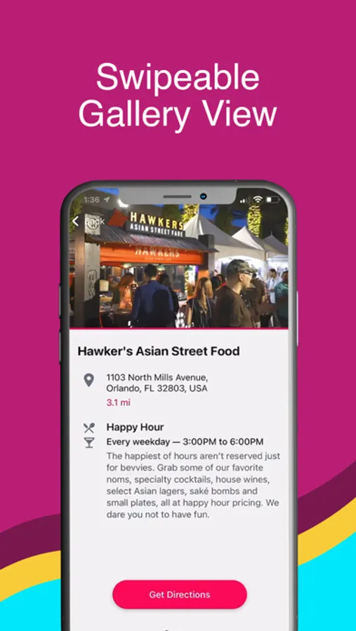 — Swipe through local restaurant and bar options with our swipeable gallery view
