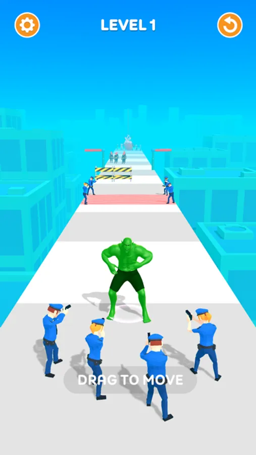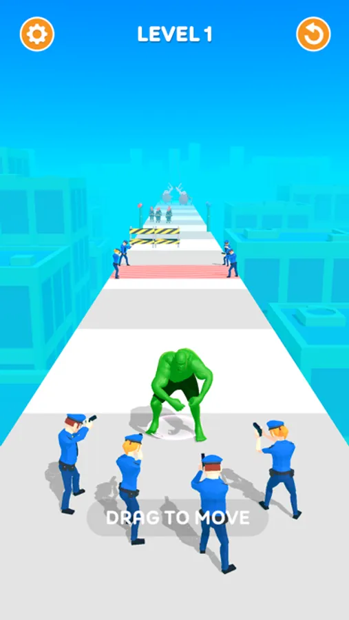 Hold your finger to slow down the green giant. Try to finish the road platform.