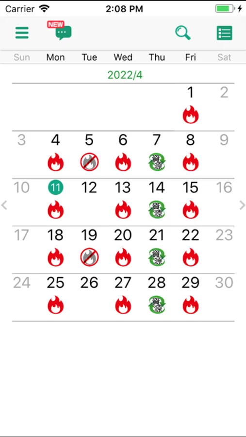 You can check three patterns of the garbage collection schedule on one screen at a glance: “Today and Tomorrow,” “Weekly,” and “Monthly.”