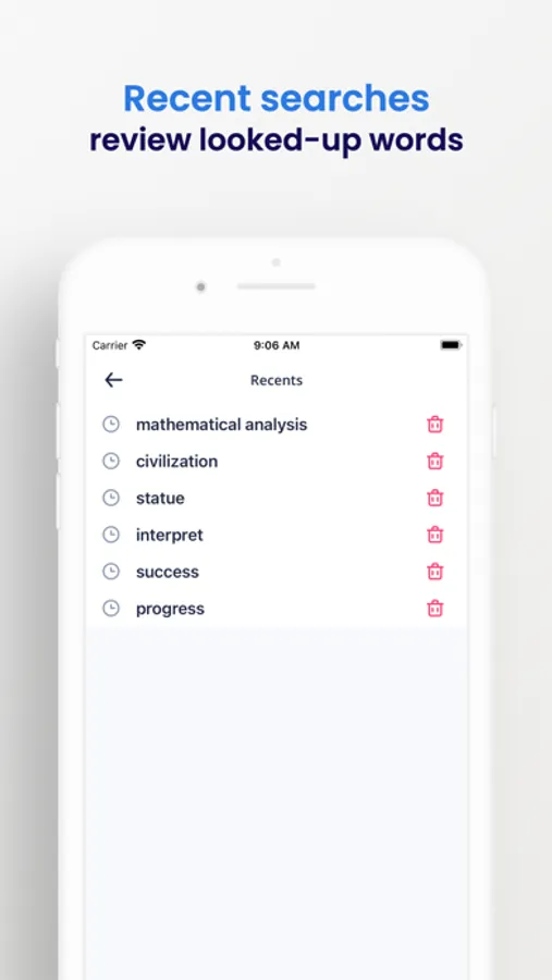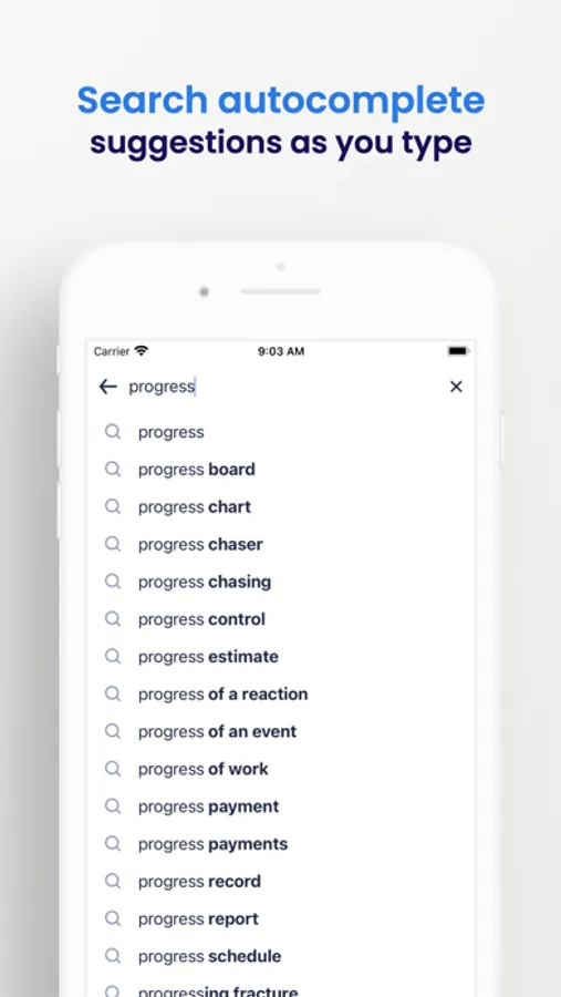 - Search autocomplete helps you find words quickly by displaying predictions as you type.