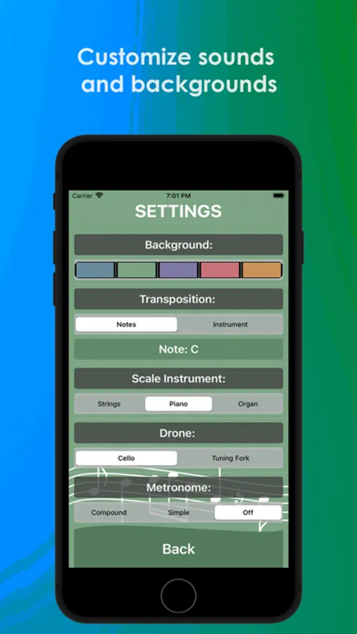 This app is intended to support music students in their scale practice