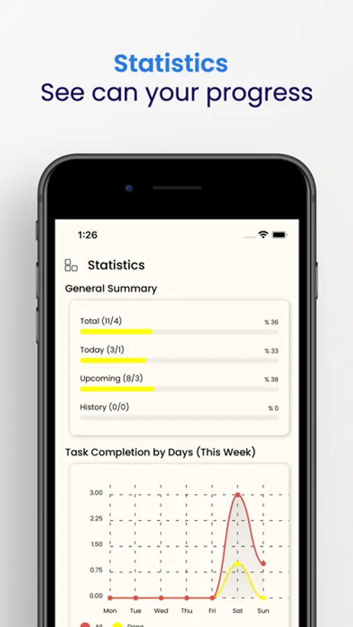 You can view your overview and observe the statistics of the tasks you have added so far in your to do lists. You can easily monitor your daily task completion and priority tasks through graphs.