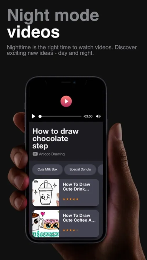 Take it up as a challenge to draw cute foods and drinks with easy video tutorials on our app!