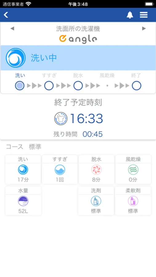 現在の洗濯の進捗状況をアプリから確認できます。