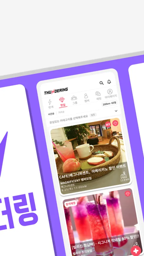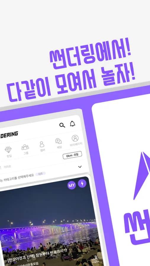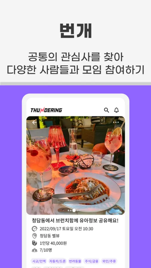 관심사에 맞는 모임과 번개를 찾고 썬더링 멤버와의 소통과 영상통화를 통해서 오프라인 활동을 하며 의미있는 시간을 보내세요!!