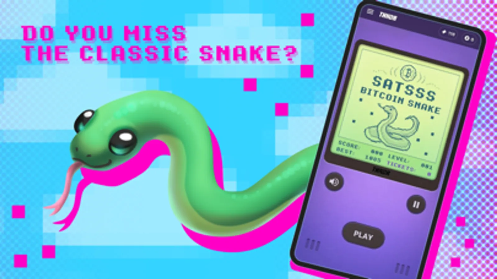 SATSSS is a free play2earn, classic mobile game with daily prize draws where you have a chance to win real Bitcoin prizes!