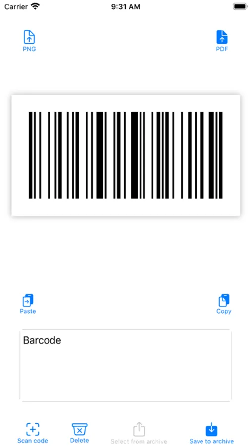 Insert text and get correct 128 barcode immediately. Share or copy high resolution image in PNG format or PDF file. Paste into any document or message. Scan any code 128 barcode, get decoded result as a text, and reworked 128 barcode. No internet connection needed. Save generated and scanned codes in a local database and restore them at any moment.