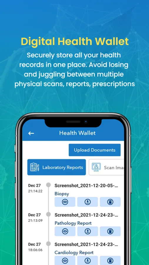 Forget the hassle of carrying all your reports and apprehension of losing your reports. With Second Consult digital health wallet, you can store and save all your reports, lab reports, radiology reports or doctors prescriptions securely. You can easily access them from your dashboard at any time and any place.
