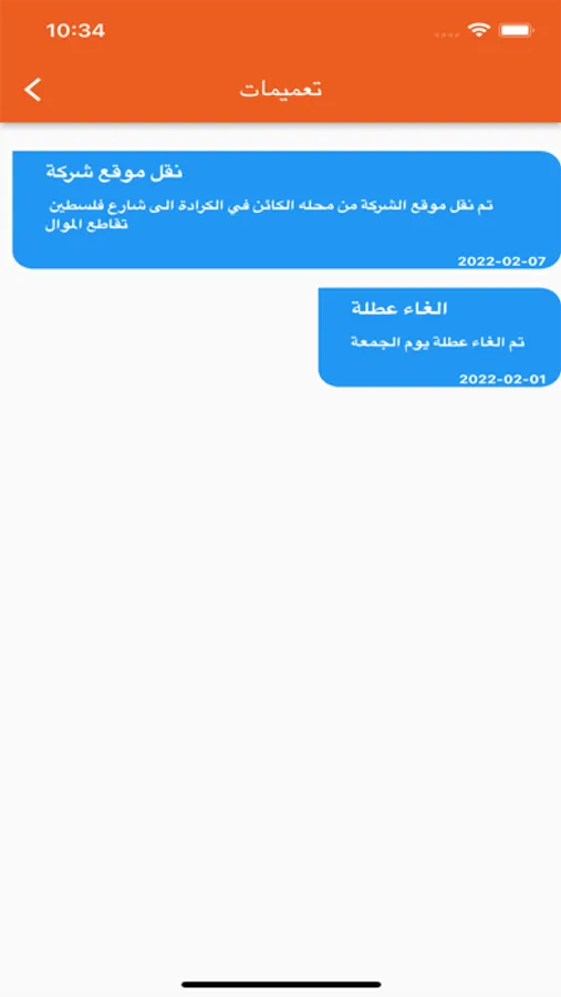 واجهة عرض لكل طلبات التوصيل السابقة مع بيان الحالة