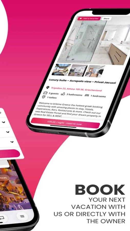 As a greek travel guidance company, bmbme Greece brings people, passions and places together. We aim to help make you a better traveler, from travel planning, to booking, to enjoy your stay in Greece. Our app lets you get the most out of your trip – whether you’re planning or on-the-go. Discover where to stay, what to do and where to eat based on guidance from millions of travelers who have been there before. Find deals on holiday homes, hotels, book experiences, reserve tables at great restaurants, bars nightlife and discover great places nearby. No matter what type of trip you’re looking to take, the Bnbme app makes planning it easy and also lets you guide others on their way.