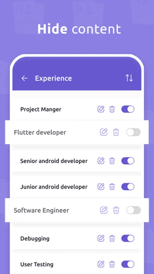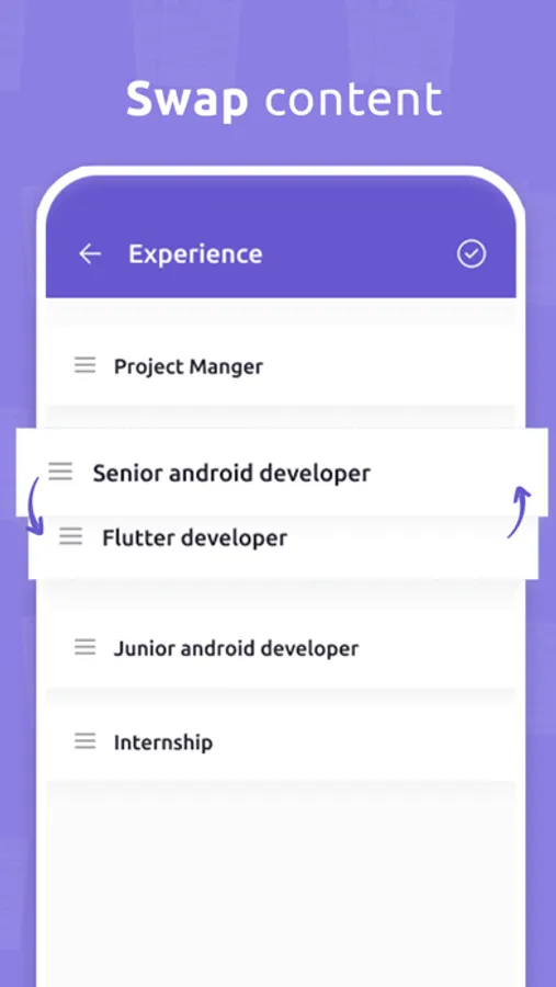 Notably, the standout feature of CV Builder is, it permits skipping particular sections (experience, background info, etc) with its enable/disable feature that allows users to hide content according to their preferences, and amazingly it won’t appear in the final document. Moreover, the inclusion of profile pictures is also not mandatory in the career edge resume builder. Once you have added personal details and objectives, you can create multiple resumes from the same data and preview your curriculum vitae early in drafting with a click. After selecting the desired template, the app will automatically fetch the previous details to get it done in minutes. Else you can easily swap the enlisted data anytime by clicking the exchange button in the upper left corner.