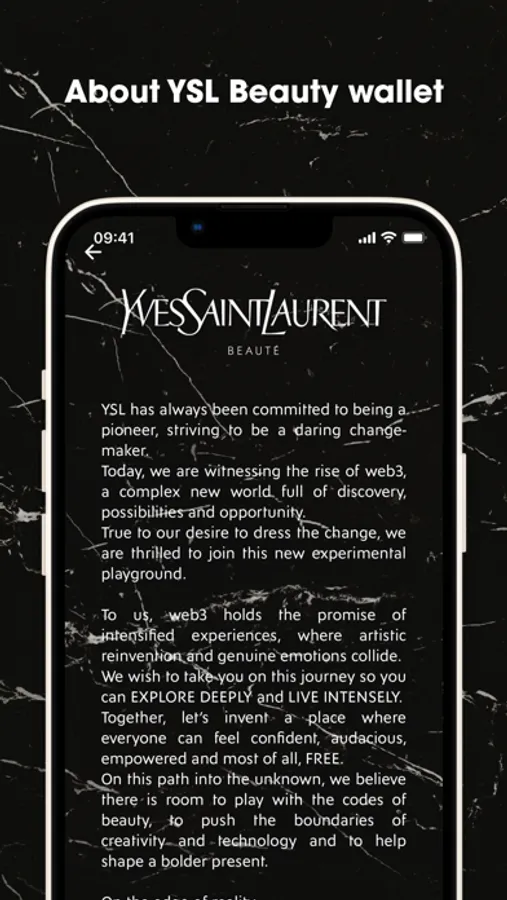 YSL Beauty Wallet will power your web3 journey and make it easy, safe and seamless to store your YSL Beauty NFTs and unlock exclusive experiences.