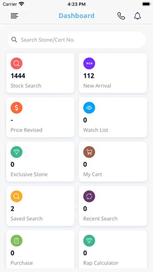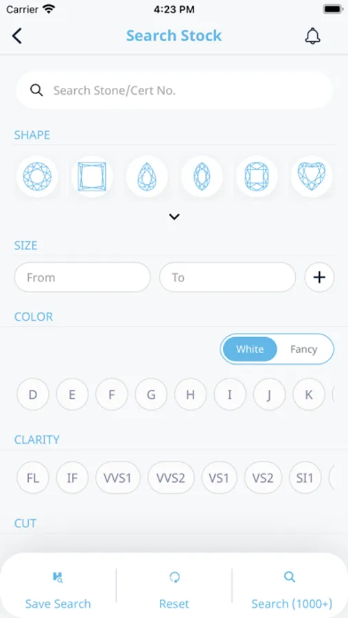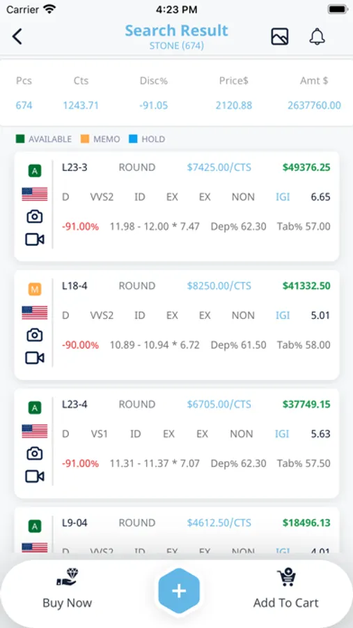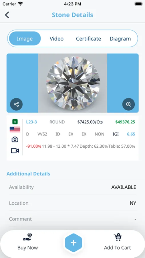 Our app includes large variety of Diamond including New Arrival, White and fancy diamond. You can share diamond details with your customer as well
