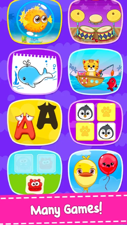 By playing this 8 Mini Phone Games you can explore different mini-games like nursery rhymes, animals, songs, balloon games, fish catching, and many more mini games.