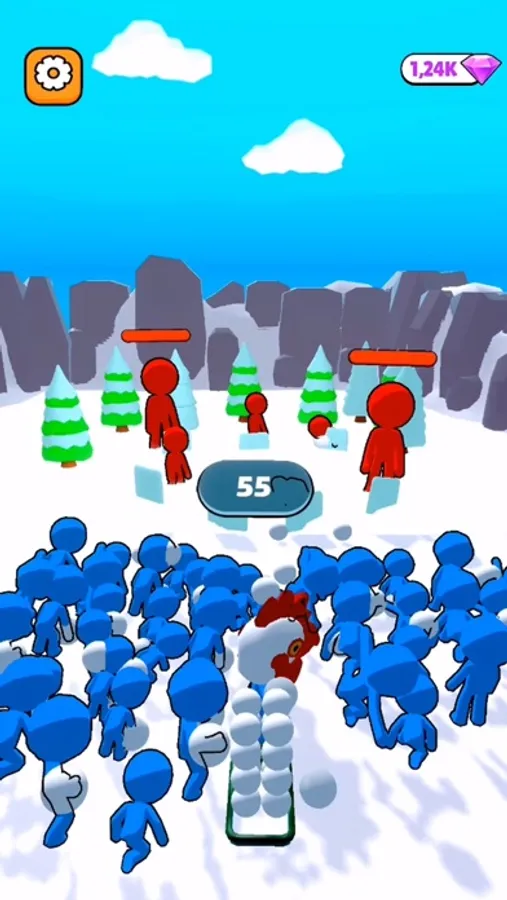 Build your snowball fight team, collect snowballs, and challenge your opponent.