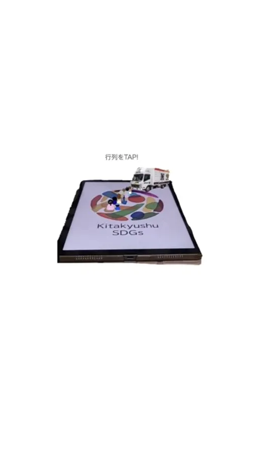 画面上でSDGsロゴをカメラでかざすとなんとそこにはキッチンカーと人の列が!!