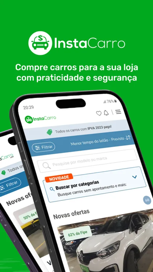 Encontre o carro perfeito para o seu negócio com facilidade e aproveite todas as vantagens do App da InstaCarro para lojistas. Comprar carro nunca foi tão simples e eficiente!