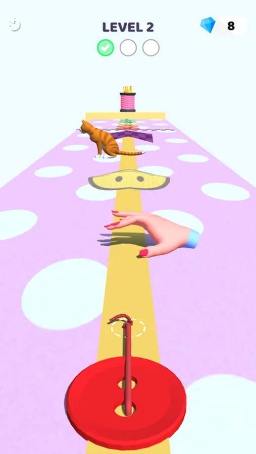 It's time to sew something. With a needle, sew the objects that come in front of you to the fabric.