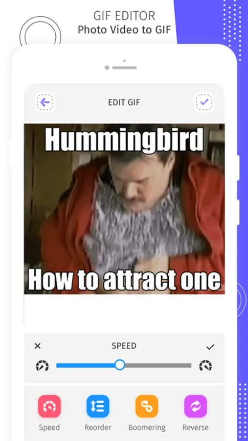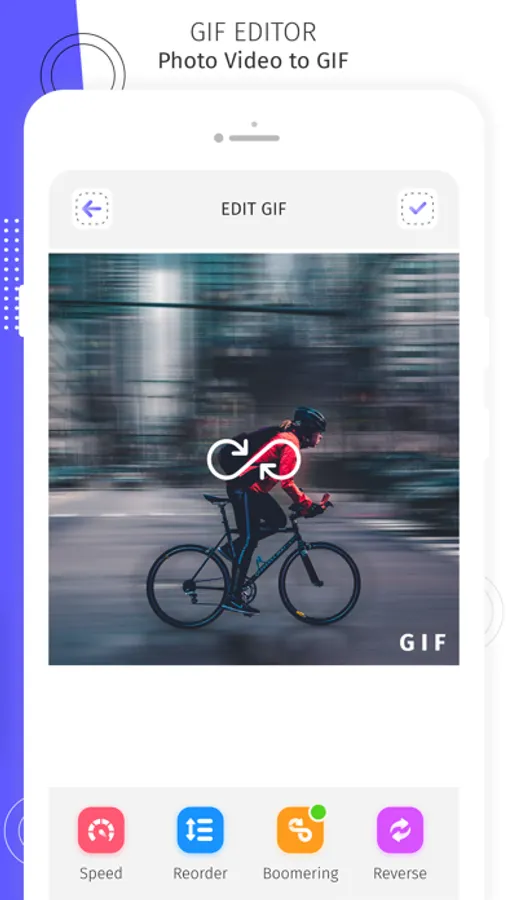 4. The app gives you reorder, speed, boomerang and reverse type of feature to make the perfect GIF.