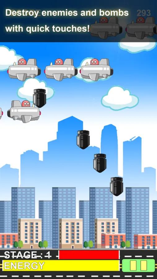 Protect the city and village by touching them quickly to destroy all the airships and bombs bombing cities and villages.