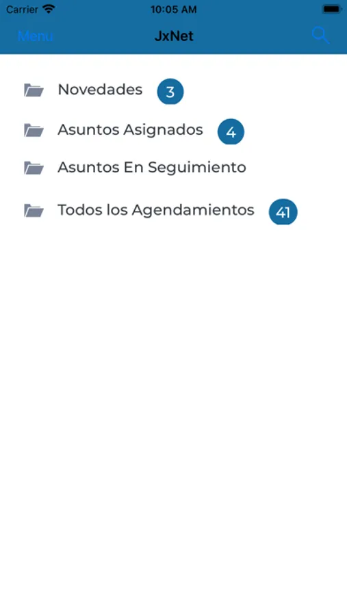 De esta manera podrá acceder a sus Asuntos Asignados, en Seguimiento, Novedades, Tareas Vencidas, Próximas Tareas, etc. Además podrá ingresar Agendamientos y Tareas realizadas.
