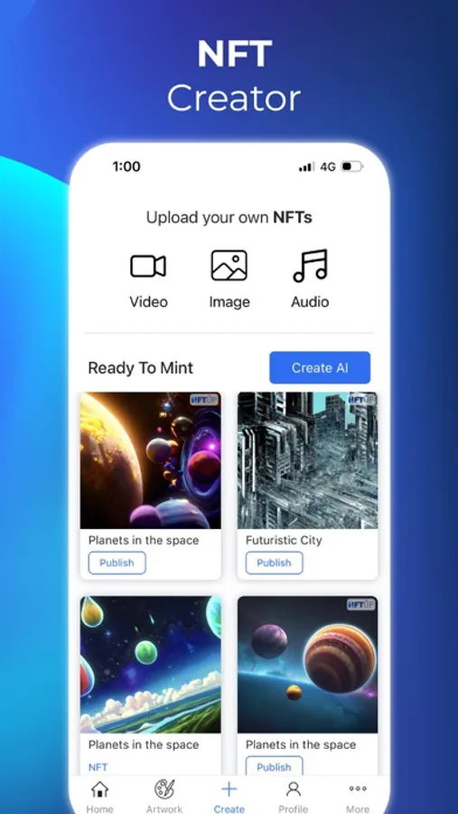 Protect your digital assets and join the world of finance and art with the AI Art Generator app.