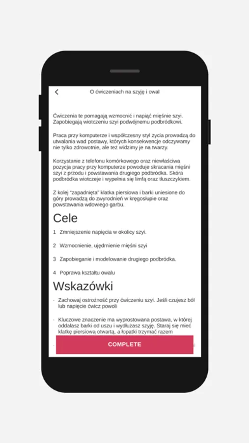 W aplikacji znajdziesz 6-tygodniowy program Modeluj twarz w 10 minut. Codzienna 10-minutowa sesja jogi twarzy pomoże Ci osiągnąć upragniony cel. Zadaniem programu jest wzmocnić i poprawić wygląd całej twarzy oraz zbudować jej nową formę. Codziennie otrzymujesz 10-minutowy trening dla urody, łączący ćwiczenia mięśni twarzy z automasażem, instrukcjami nakładania plastrów kinesio.