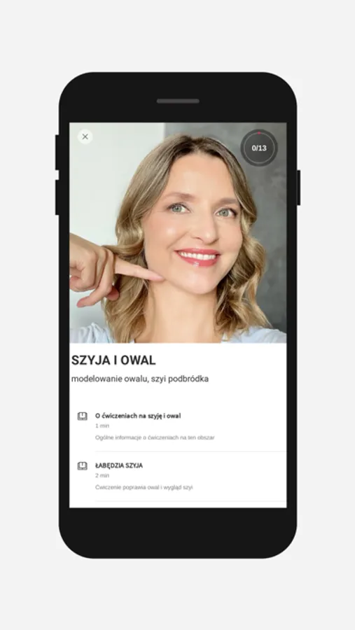 Ćwiczenia zawarte w kursie Szyja i Owal mają za zadanie wzmocnienie, ujędrnienie mięśni szyi, zmniejszenie i wymodelowanie drugiego podbródka, poprawę kształtu owalu, zmniejszenie napięcia w okolicy szyi.