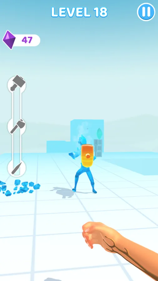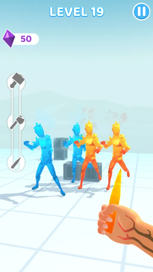 Now you hold in your two-element weapons. First, choose your element and have to aim at enemies because they are coming for you. If you hold to screen so it gonna be growing. The control is yours. Hold, aim, shot. Good luck with that.