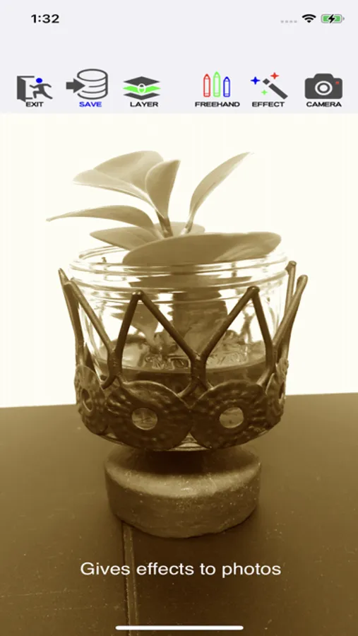 EFFECT icon ・ ・ ・ Gives various effects to the pictures taken.