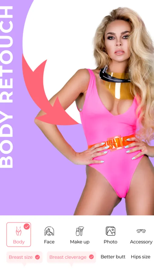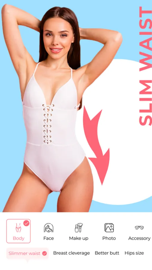 Achieve your dream body effortlessly with Picso's extensive body editing capabilities. Slim down your waist, enhance your curves, shape your breasts, define your butt, and more. Say goodbye to stretch marks, scars, and cellulite. You can even adjust your arms, legs, shoulders, and skin tone to your liking.