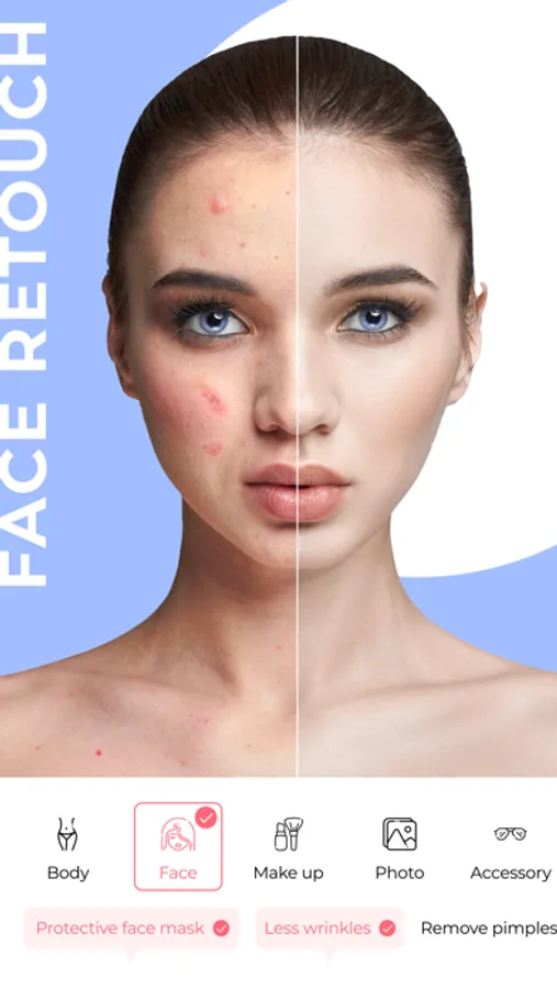 Capture your best face with Picso's advanced facial retouching tools. Smooth away wrinkles, banish pimples and moles, and achieve flawless skin. Sculpt your face, reduce double chin, refine your neck, and eliminate redness. Enhance your eyes, lips, and even correct your nose. Explore the possibilities of virtual makeup, including lipstick, eye shadow, highlight, blusher, and even manicure and pedicure options.