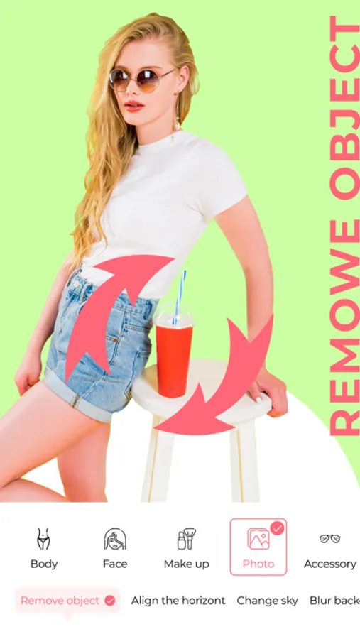 Unleash your creativity with accessories that transform your look. Add tattoos, remove unwanted ones, try on glasses or headwear, and experiment with rings and earrings. Want to adjust the background or change the sky? We've got you covered.