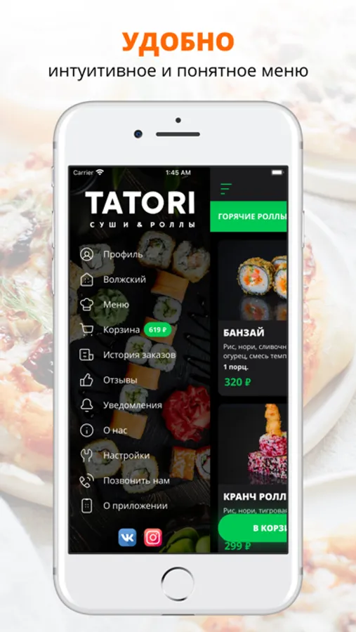 Воспользуйтесь удобным приложением для заказа еды «TATORI | Волжский».