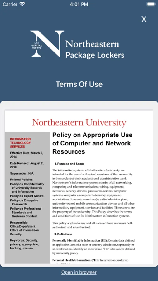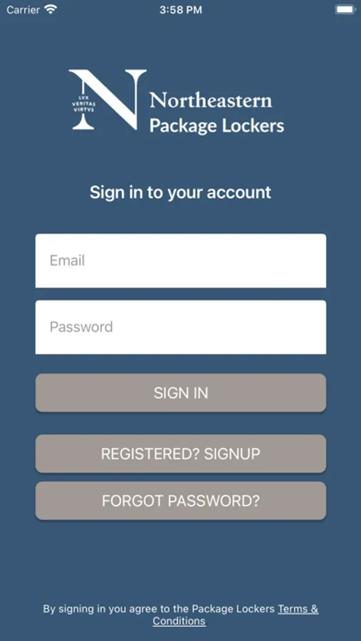 The NU Husky Package Lockers Mobile App provides the following functionality: