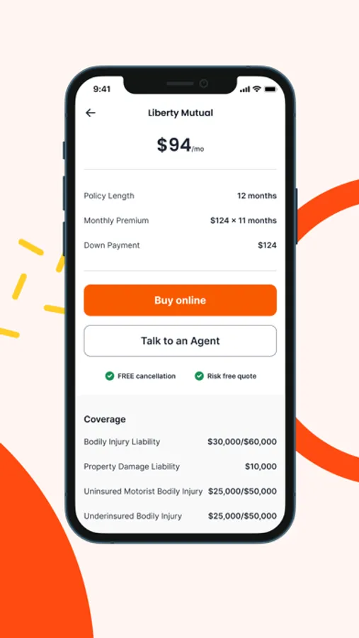 Just download the app, complete a short form, and choose from a list of customized car insurance quotes from up to 20 different providers. You’ll be able to set your desired coverage limits to meet or exceed your state’s minimum insurance requirements, compare available deals, and secure coverage all within the app. Complete your shopping experience 100% in-app or get help from one of our licensed insurance agents over the phone.