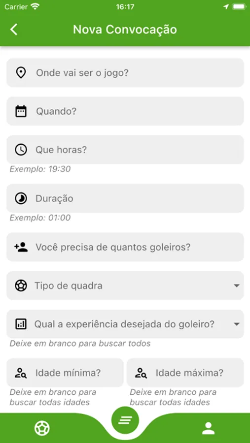 Agora com nosso aplicativo você pode contratar goleiros para suas partidas de futebol.