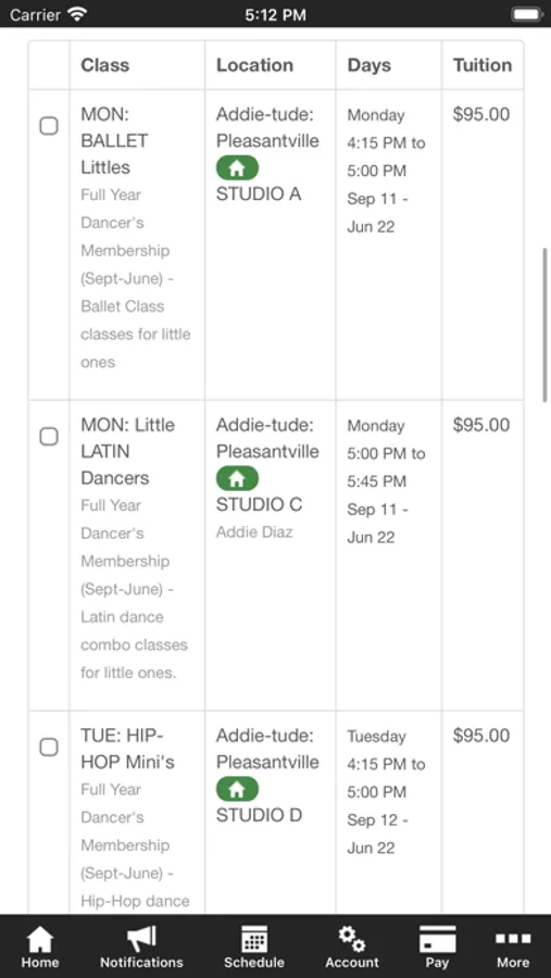 The Addie-tude app allows you to manage your account with ease, register for classes, social dances, and special events. You'll also receive important notifications about class changes, closings, registration openings, special announcements, and upcoming events.