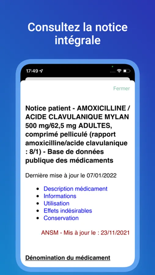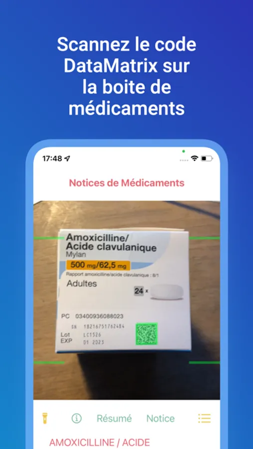 Accédez aux notices de plus de 15,000 médicaments en scannant simplement le "QR code" (code datamatrix) situé sur la boite de médicaments. Une application simple et efficace, avec une lecture adaptée aux mobiles.