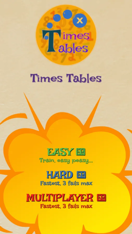 Play "Easy" mode for a linear progression through all multiplication tables, from 1 to 9. Play "Hard" mode for a more challenging experience.